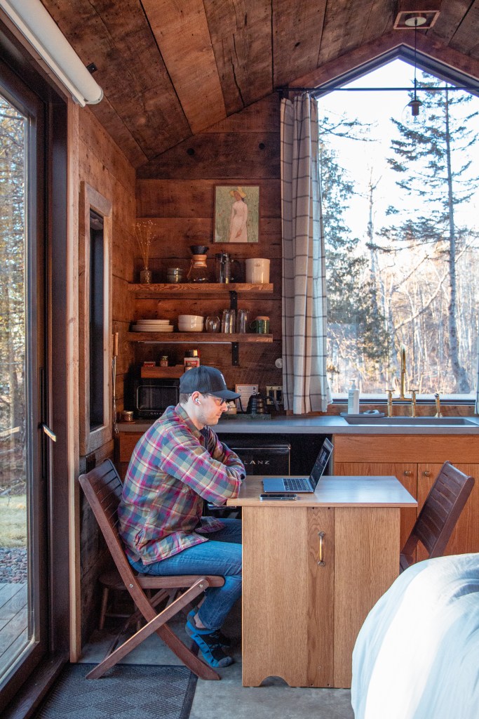 Day 2 – The morning was so peaceful waking up. We opened the screen covering the sliding doors with a flip of a switch without having to get out of bed, and enjoyed the sunrise. When we finally pulled ourselves out of bed Bryan got to working remote at the small table provided and I ventured up to Grand Marais for coffee at Java Moose. The Nordic Miel is a MUST if you’re in the area.