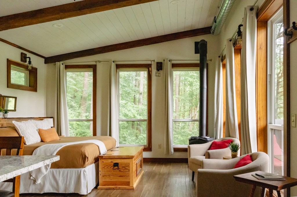 As much as I loved the large family Sylvan Cabin, I think Spring Water Retreat and Water Villa were more my vibe. Cozy, romantic, secluded. This is a must stay for a couple on their anniversary or just a little weekend getaway. I loved how each cabin was nestled in the woods but still had a water view and outdoor areas; adirondack chairs, a porch/patio, and fire pits. Fully stocked kitchens, washer and dryer, and large king beds make these two cabins so comfortable and inviting. I can’t wait to go back and enjoy these spaces with Bryan someday. We love a nature filled romantic getaway!