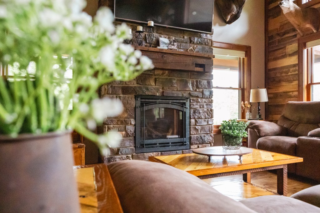 This gorgeous chalet style rustic home boasts 5 bedrooms, 3 bathrooms, a large living/dining/kitchen space, basement game room, and large wrap around porch. My favorite part of this stay was making a hot cup of coffee in the morning and sipping it on the expansive porch. You sit overlooking the beautiful on-property pond and can hear absolutely nothing except wildlife and nature. It’s peaceful, secluded, and the perfect family getaway.